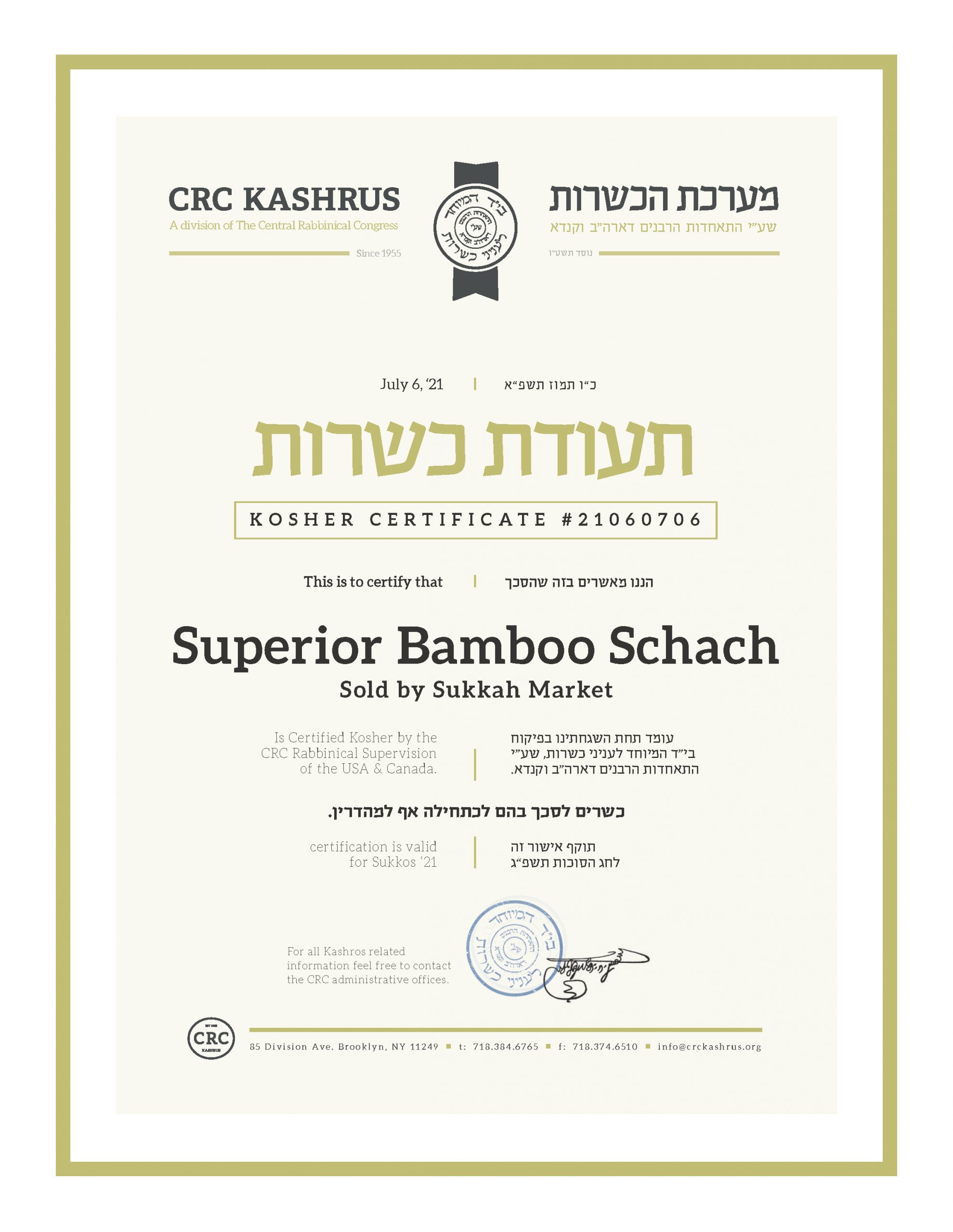 Schach is also sold in our complete Sukkah kit, in our Traditional, Advanced and Ultimate Sukkah sizes.